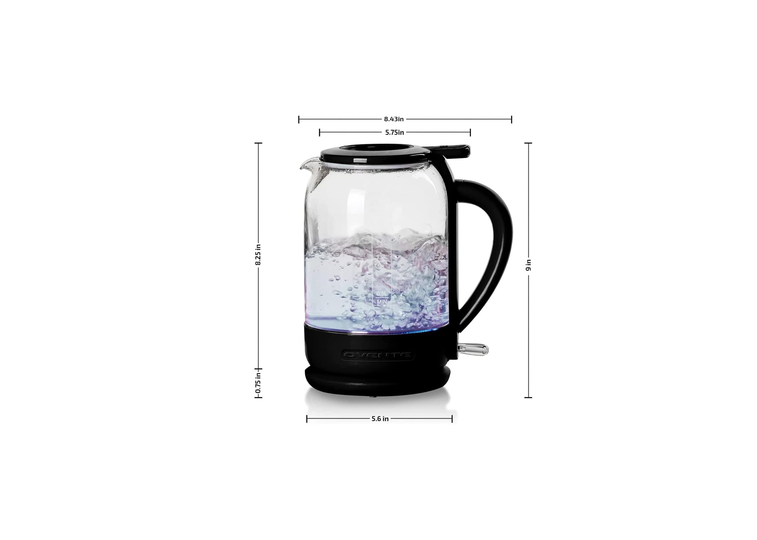 - Simplify Your Sips: Transform your mornings into a moment of pure bliss and efficiency with the Ovente 1.7L Electric Glass Kettle. Designed with unique ProntoFill™ technology, this appliance allows for seamless filling without needing to remove its lid.